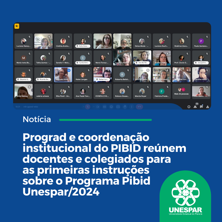 Prograd e coordenação institucional do PIBID reúnem docentes e colegiados para as primeiras instruções sobre o Programa Pibid Unespar/2024