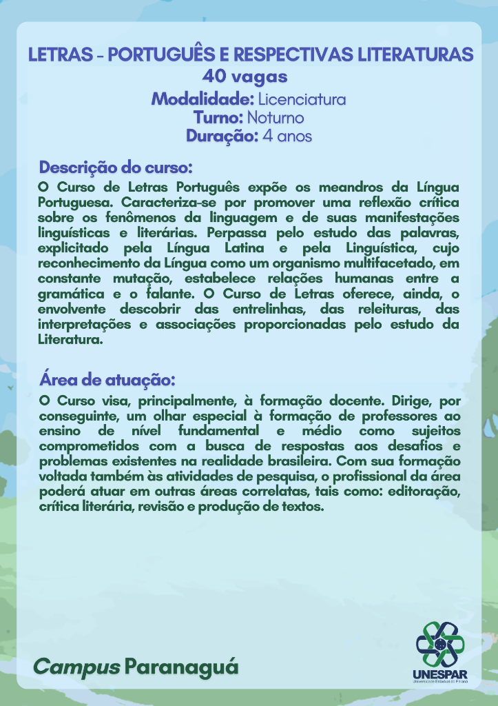 Paranaguá - LETRAS - PORTUGUÊS E RESPECTIVAS LITERATURAS