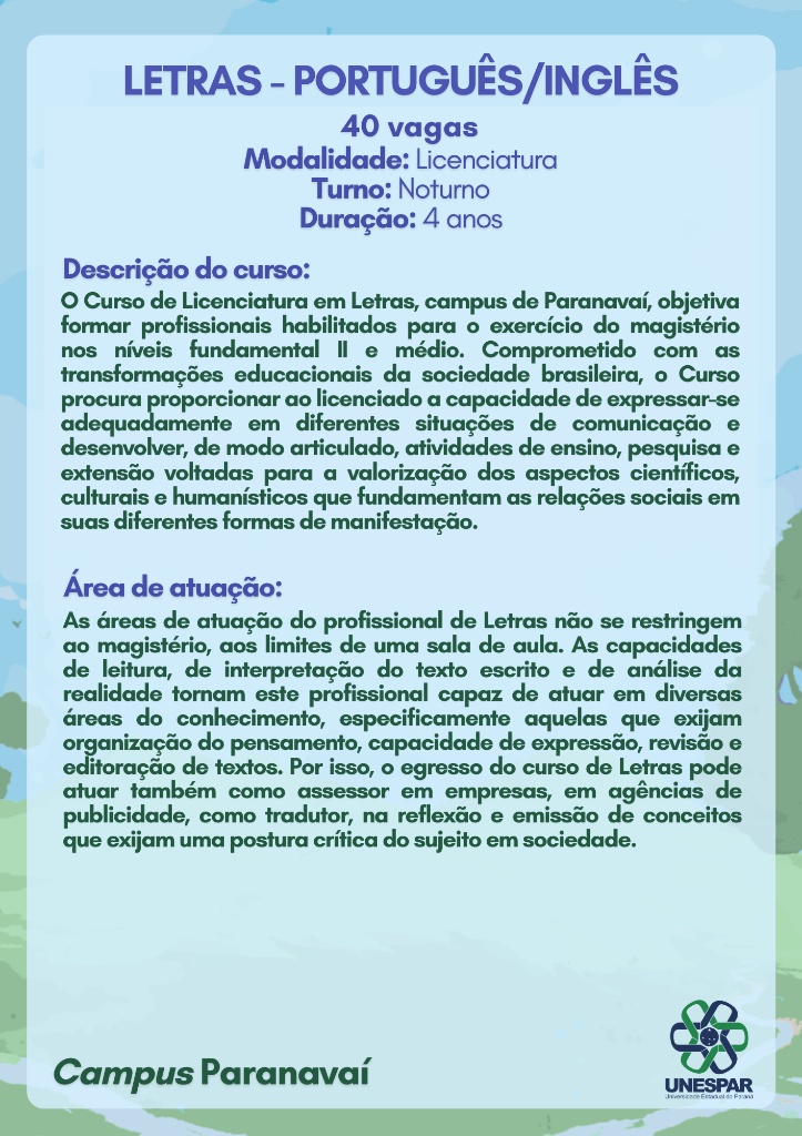 Paranavaí - LETRAS - PORTUGUÊS INGLÊS
