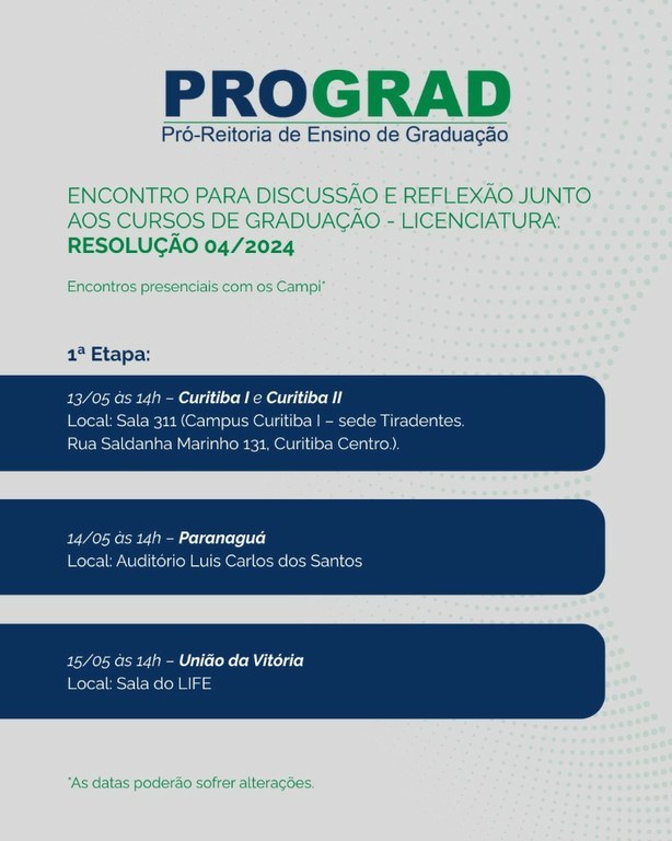 Para as Licenciaturas a iniciativa está alinhada às diretrizes da Conselho Nacional de Educação, Resolução CNE/CP nº 04/2024, consolidando o “Plano de Trabalho para Discussão, Regularização e Implantação da Resolução nos cursos da Unespar”.